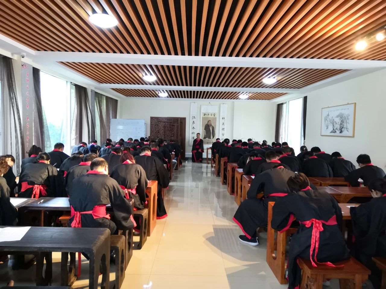 青岛无极养生教育传统文化研修院,青岛中医推拿实训基地,青岛爱心康复中心诸善学子以虔诚之心、崇仰之情,谨以释尊大典,袛于先师之圣灵。