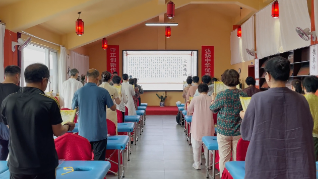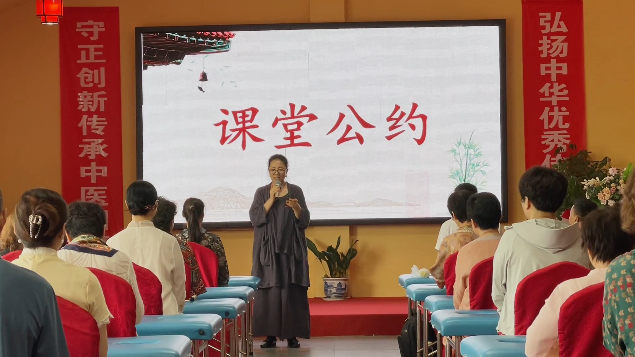 6月28日一早,来自五湖四海的伙伴们齐聚胶州少海孔子六艺园,大家带着对三天课程的期待迈入教室,随着“摇铃启课”的声音响起,全体学友们稳下心神,投入其中,跟随主持人的引导奏唱了国歌、祖国颂,完成对大成至圣先师孔圣人的三拜礼;随后,大家一同诵读了孙思邈的《大医精诚》。课前的修身仪式让学友们逐渐放下浮躁的身心,全情投入到中华优秀传统文化以及中医理论知识的学习和发扬中。