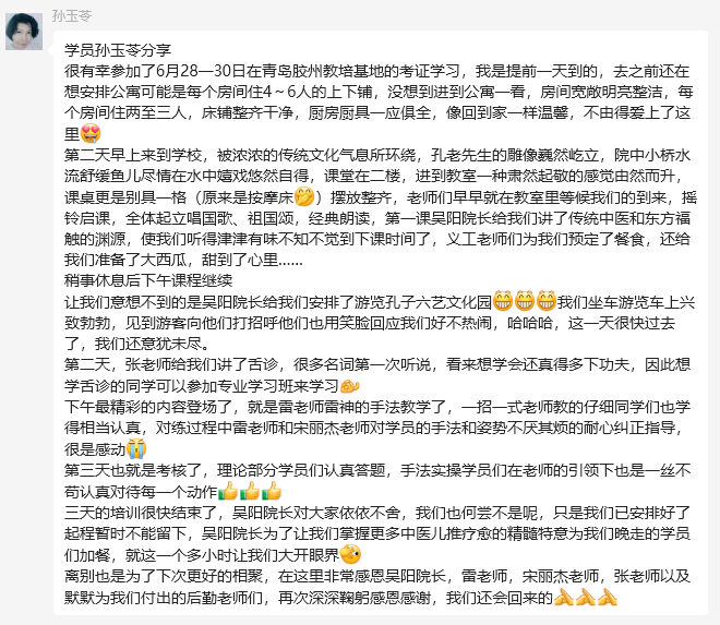 6月29日上午,小儿推拿讲师张吉旭老师为各位学友带来了《舌诊》的相关课程,大家纷纷表示一堂课下来专业知识以及干货满满,受益匪浅,并决定进修相关课程,提升自身专业技能水平。